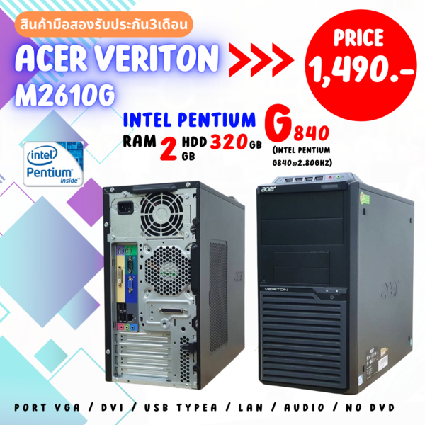 คอมพิวเตอร์ acer veriton m2610g intel pentium g840 พร้อมลงโปรแกรมให้พร้อมใช้งาน(มือสอง)